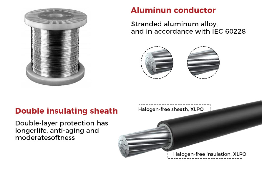 Aluminiumkern, Klasse 2, 120 mm², TÜV 2PfG/2642, 1500 V DC-Kabel, Xlpo-Isolierung, Solarkabel
