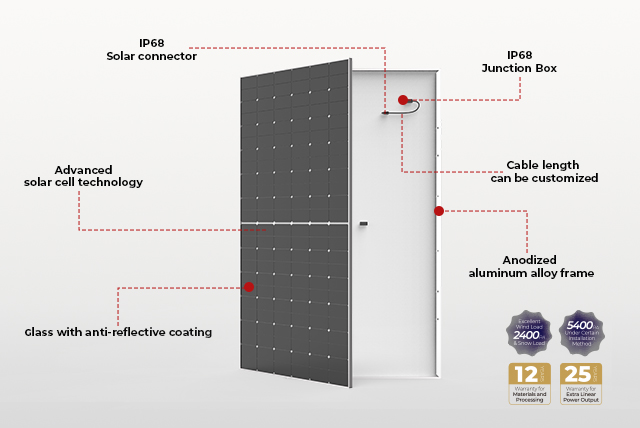 SUNKEAN-Solarmodule verfügen über eine höhere Modulumwandlungseffizienz, niedrigere Kosten pro Kilowattstunde, eine hervorragende Anti-PID-Leistung, haben die Salzsprühtoleranz- und Ammoniakbeständigkeitszertifizierung bestanden und die Zertifizierung für 2400 Pa Windlast und 5400 Pa Schneelast bestanden. Die Solarmodule und Anschlüsse sind langlebig und wasserdicht. Der Rahmen aus eloxierter Aluminiumlegierung ist langlebig und hält den Auswirkungen von Hurrikanen, Regen, Schnee und mehr stand.