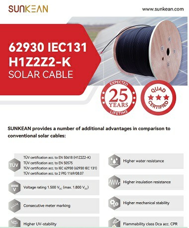 Wenn PV-Kabel in Verbindung mit anderen PV-Modulen für den Export nach Europa verwendet werden, müssen die Kabel dem vom TÜV Rheinland ausgestellten TÜV MARK-Zertifikat entsprechen. Ende 2012 führte der TÜV Rheinland Deutschland eine Reihe neuer Standards für PV-Module, einadrige 1,5-kV-Gleichstromkabel und mehradrige PV-Wechselstromkabel ein.