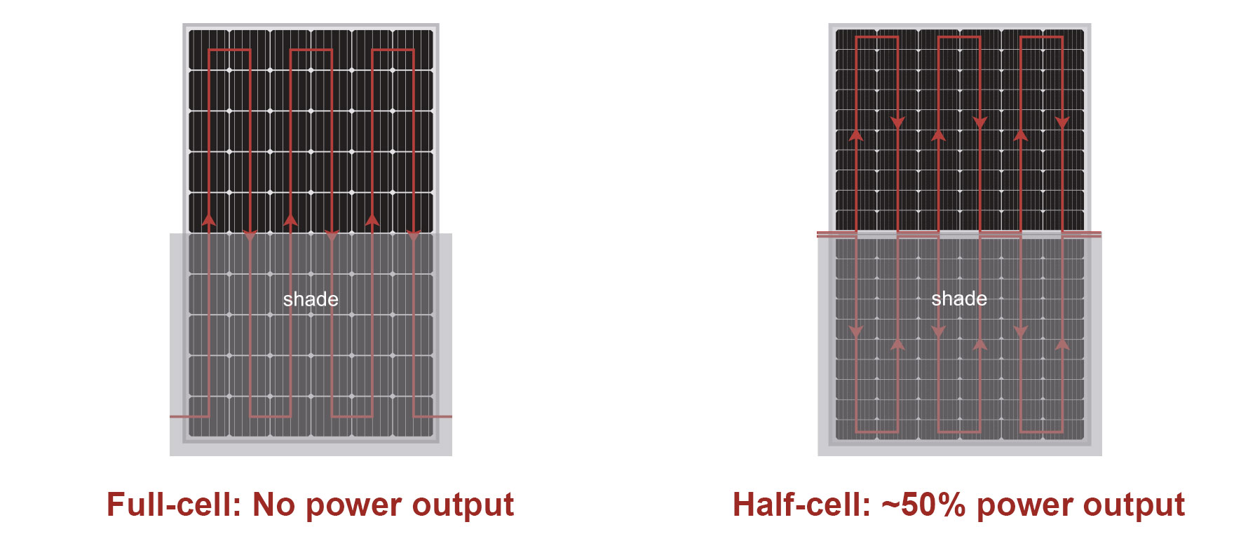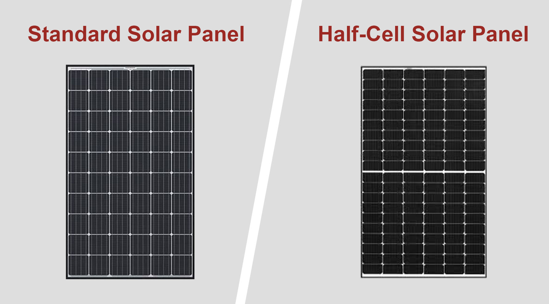 Halbzellen-Solarmodule sind genau das, was ihr Name vermuten lässt – traditionelle Solarzellen, die mit einem Laserschneider. in zwei Hälften geschnitten wurden, im Gegensatz zu den Standardmodulen,, die 60 oder 72 Zellen, pro Halbzelle enthalten Modul verdoppelt die Anzahl der Zellen auf 120 oder 144 Zellen pro Modul. es hat die gleiche Größe wie ein Standardzellenmodul, aber mit Halbzellen. schafft die Technologie der Verdopplungszellen mehr Möglichkeiten, Sonnenenergie aus dem Sonnenlicht zu gewinnen und an den Wechselrichter senden.