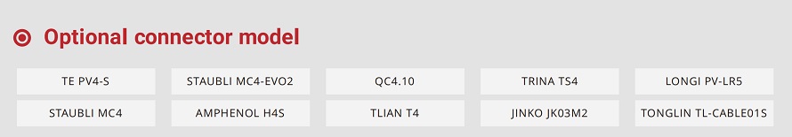 Daher, um den Kunden den Einkauf aus einer Hand zu bieten und den sicheren Betrieb der Anlage, die Erzeugungseffizienz und die wirtschaftlichen Vorteile zu gewährleisten. SUNKEAN bietet die folgenden Steckverbindermarken an, die zu den Steckverbindern verschiedener gängiger Solarmodulmarken passen.