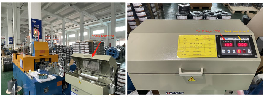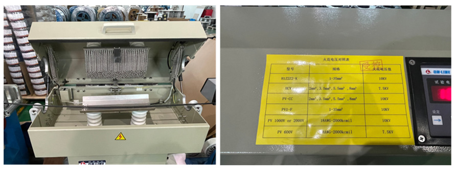Für das beliebte Modell H1Z2Z2-K / 1~35 mm2 beträgt die Prüfspannung 10 kV. Es werden unterschiedliche Funkentestspannungen angelegt, die durch die Querschnittsfläche des Leiters und des Isolationsmaterials bestimmt werden, wobei die entsprechende Spannung in der entsprechenden Kabelnorm angegeben ist.