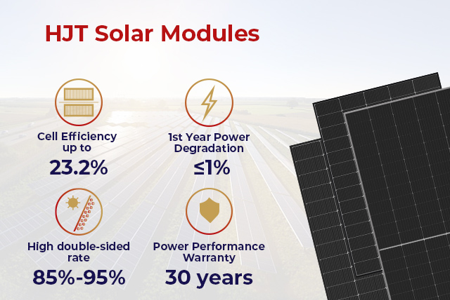Hohe Bifazialität: HJT-Zellen haben einen hohen Bifazialitätsfaktor von 92 %, was sie zu einer guten Wahl für Anwendungen im Versorgungsmaßstab macht, die die Albedo-Ressource nutzen können.