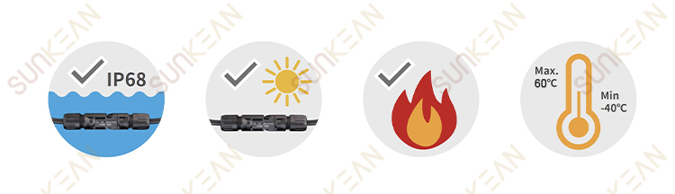 Die SUNKEAN-Inline-Sicherungsbaugruppe besteht aus hochwertigen wetterbeständigen Materialien und einem formversiegelten Herstellungsprozess, um langfristige Zuverlässigkeit zu gewährleisten. Sie können vor Ort installiert werden. Niedriger Kontaktwiderstand und hohe Stromübertragungsfähigkeit sorgen für eine hohe Produktionseffizienz. Dank der Wasserdichtigkeitsklasse IP68 kann es in einem weiten Betriebstemperaturbereich eingesetzt werden.
