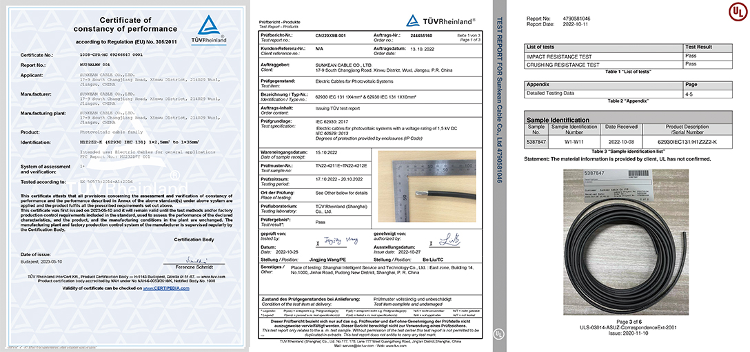Wir sind einer der chinesischen PV-Kabelhersteller und -lieferanten. Unsere SUNKEAN® H122Z2-K-Kabel erfüllen die CPR Dca-Zertifizierungen, die sowohl für Solaranlagen als auch für PV-Dachinstallationen gelten, was Ihren Bedarf an PV-Kabeln vereinfachen kann.