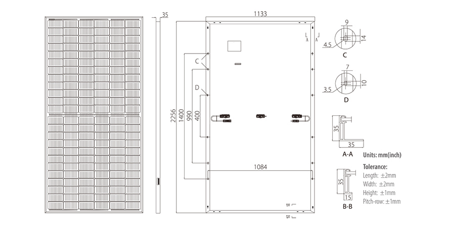 * STC (Standard Prüfung Bedingungen): Bestrahlungsstärke 1000W / m 2, Zelltemperatur 25 ° C , Spektren bei AM1.5