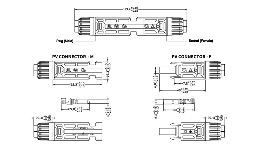 Die PV Stecker ist geeignet für Solarkabel 2,5mm 2 , 4mm 2und 6mm 2 in Solaranschluss Projekt , schnell und zuverlässiger Anschluss der Solarkabel an die Photovoltaikanlage (Solarmodule, Konverter)