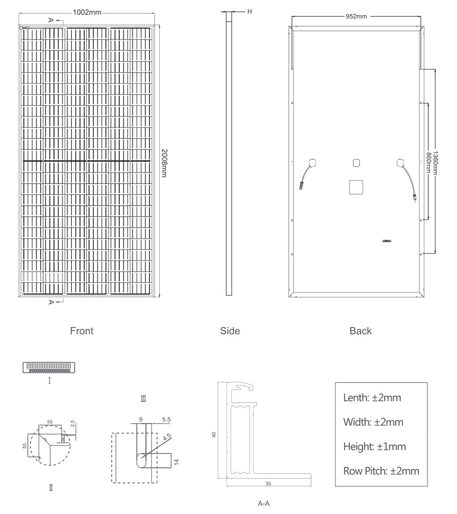 | Modulwirkungsgrad STC (%) | 19.38 % | 19.63 % | 19.88 % | 20.13 % | 20.38 % | |||||