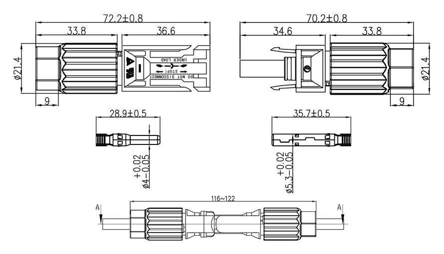 IP68 wasserdichte Solar-Photovoltaik-Gleichstromstecker-Stecker und -Buchsen sind vom TÜV zugelassen kann Photovoltaikkabel mit aufnehmen unterschiedliche Isolationsdurchmesser