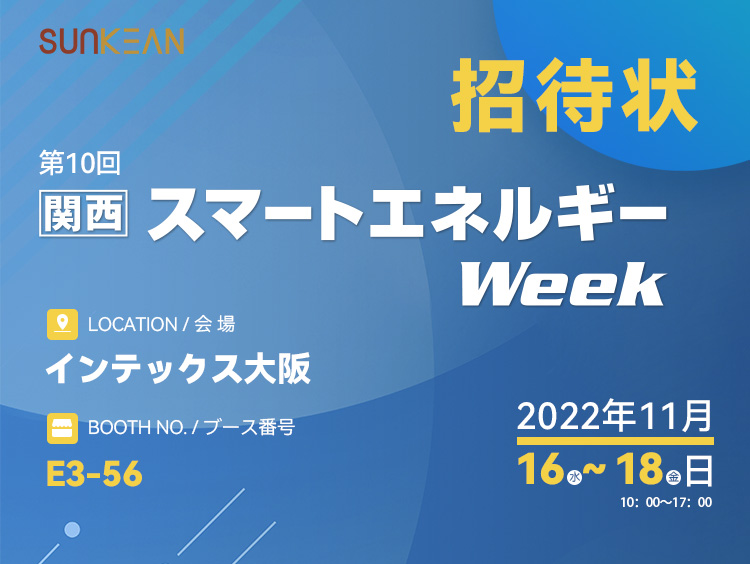 Vom 16. bis 18. November 2022 findet im INTEX International Exhibition Center in Osaka, Japan, die World Smart Energy Week OSAKA 2022 statt, an der SUNKEAN wie geplant teilnehmen wird.